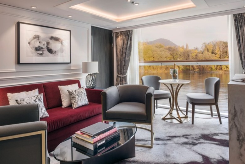 Luxurious riverview suite (506 sq ft - 47 sq m) with a spacious living roomKing-sized bed (convertible to 2 singles), fine custom linens, walk-in closets, hair dryer, safe, individual thermostat, and flat-screen TV with infotainment centerLarge bathroom with Asprey bath and body products, plush towels, comfortable bathrobes and slippers, double sink vanity, and rain showerAdditional amenities and service include: in-suite butler service; packing and unpacking assistance; in-room breakfast; daily fruit and cookie plate, and an elegant evening snack; espresso machine and fine teas; fully stocked mini bar; bottle of wine upon arrival; shoe shine; and free laundry serviceNote that amenities may differ from those of a Uniworld company-owned ship