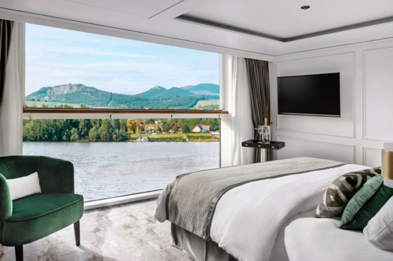 Luxurious riverview suite (253 sq ft - 23.5 sq m)King-sized bed (convertible to 2 singles), fine custom linens, built-in closets, hair dryer, safe, individual thermostat, and flat-screen TV with infotainment centerLarge bathroom with Asprey bath and body products, plush towels, comfortable bathrobes and slippers, double sink vanity, and rain showerAdditional amenities and services include in-suite butler service, packing and unpacking assistance, in-room breakfast, daily fruit and cookie plate and an elegant evening snack, espresso machine and fine teas, fully stocked mini bar, bottle of wine upon request, shoeshine, and free laundry serviceNote that amenities may differ from those of a Uniworld company-owned ship